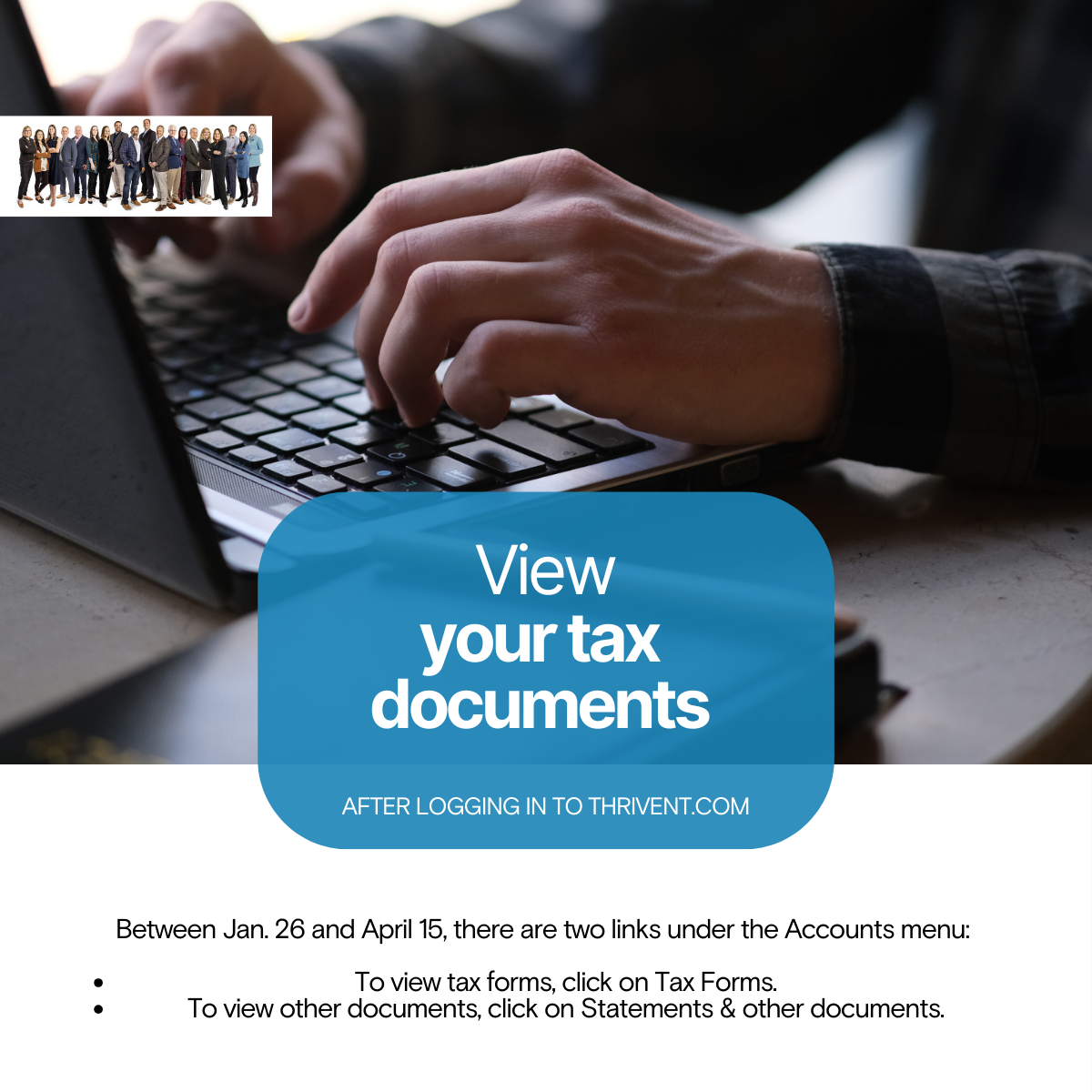 We are proud to be part of Thrivent, a company with a long heritage of financial strength and fiscal stability. For more than 120 years, Thrivent has helped people build their financial futures and live more generous lives. Today, Thrivent is a Fortune 500 company, offering a full range of expert financial solutions, serving more than 2.4 million clients, as well as the communities in which they live and work.