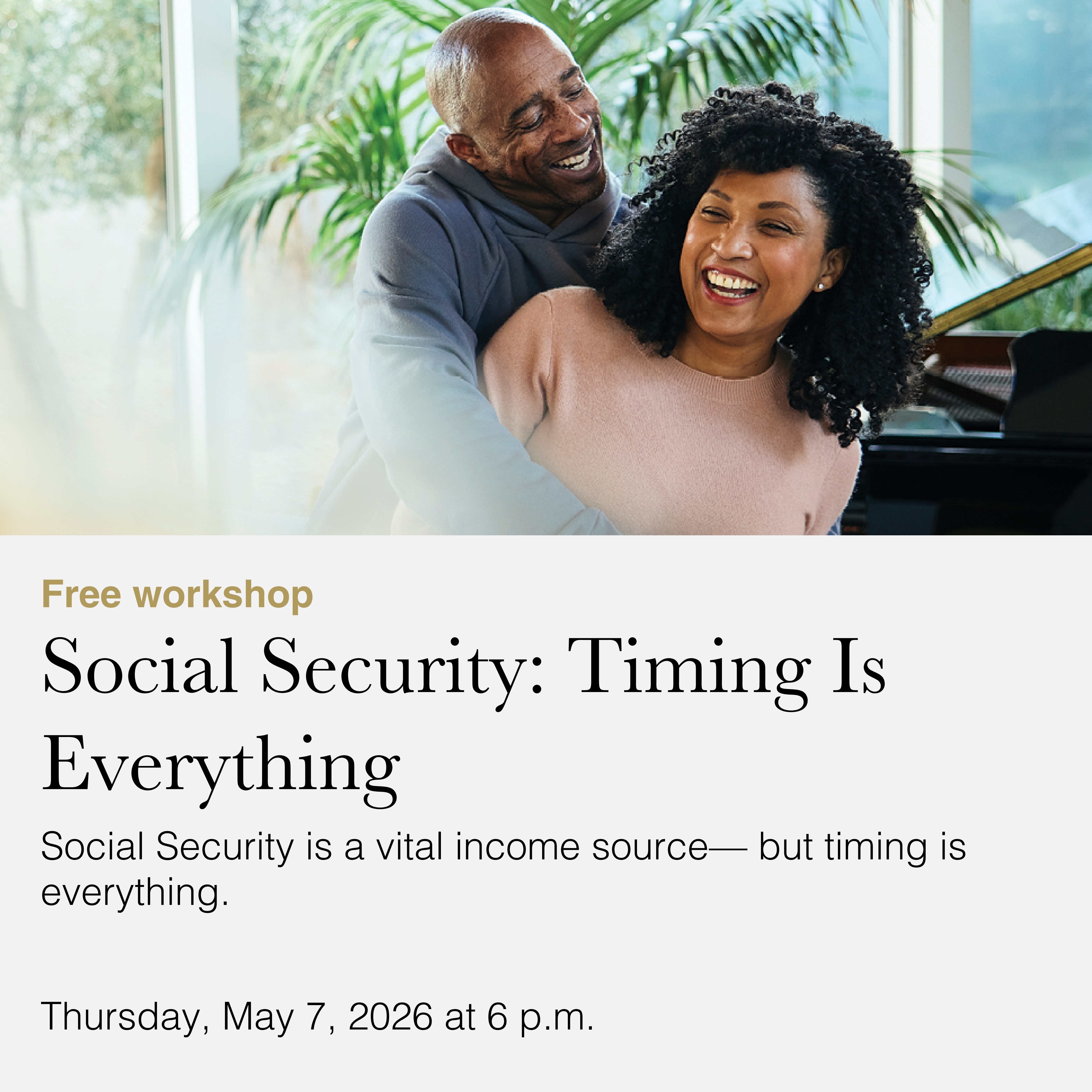 RegisterTiming is everything when it comes to Social Security benefits. Find out how you can optimize Social Security and know how much you can expect to receive from other income sources.