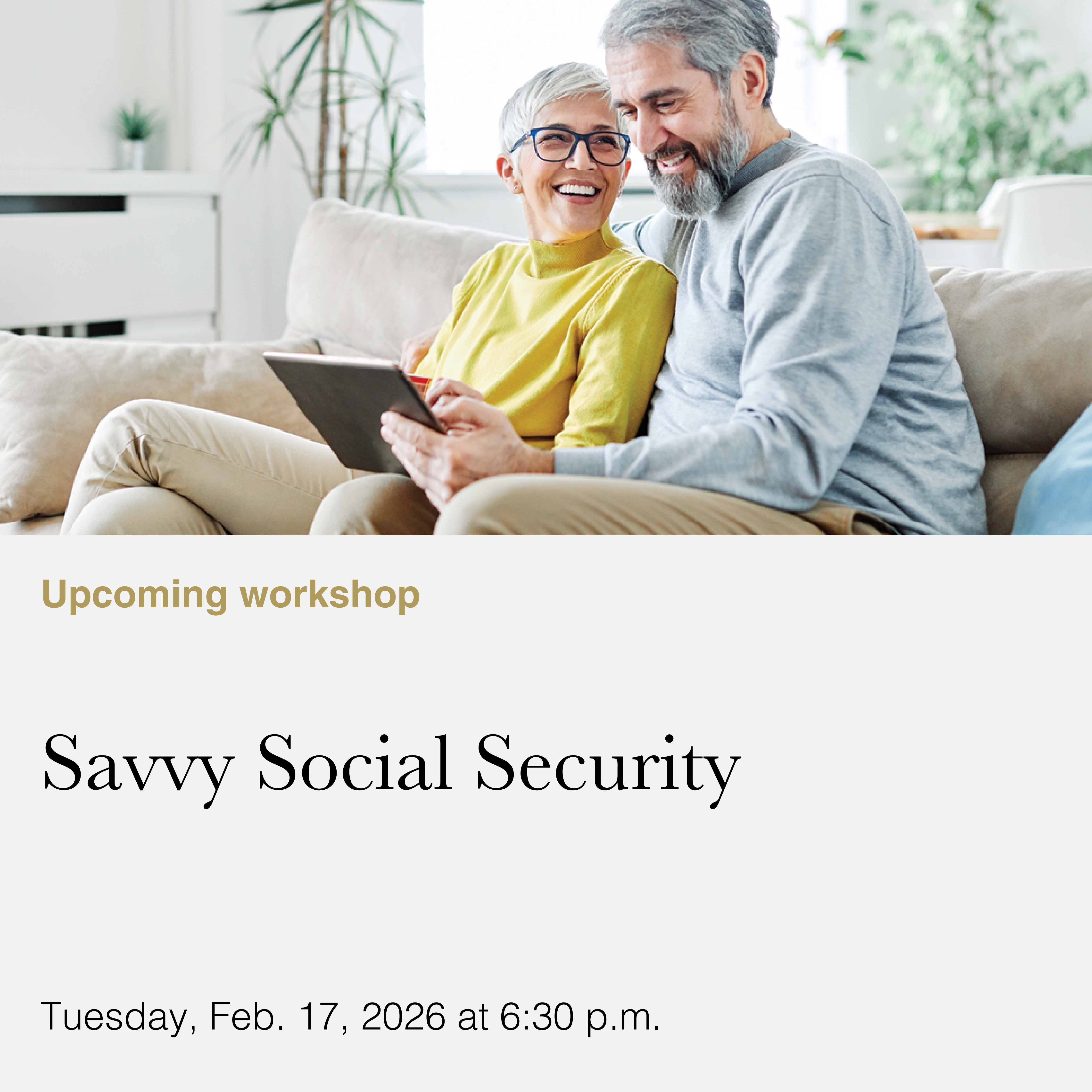 Careful planning can help you get the most out of your Social Security benefits. Savvy Social Security is a free workshop from Thrivent that will help you determine the ideal time to apply and ways to help maximize your Social Security benefits while minimizing taxes on those benefits.