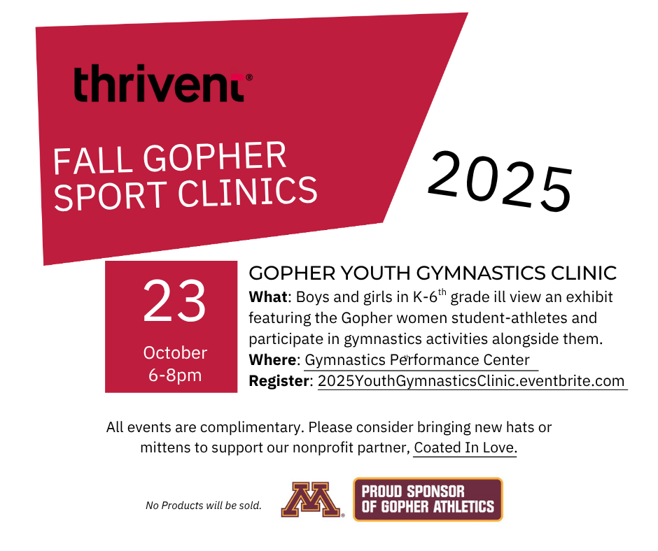 RegisterYou're Invited to the 2025 Thrivent & Golden Gophers Youth Gymnastics Clinic!